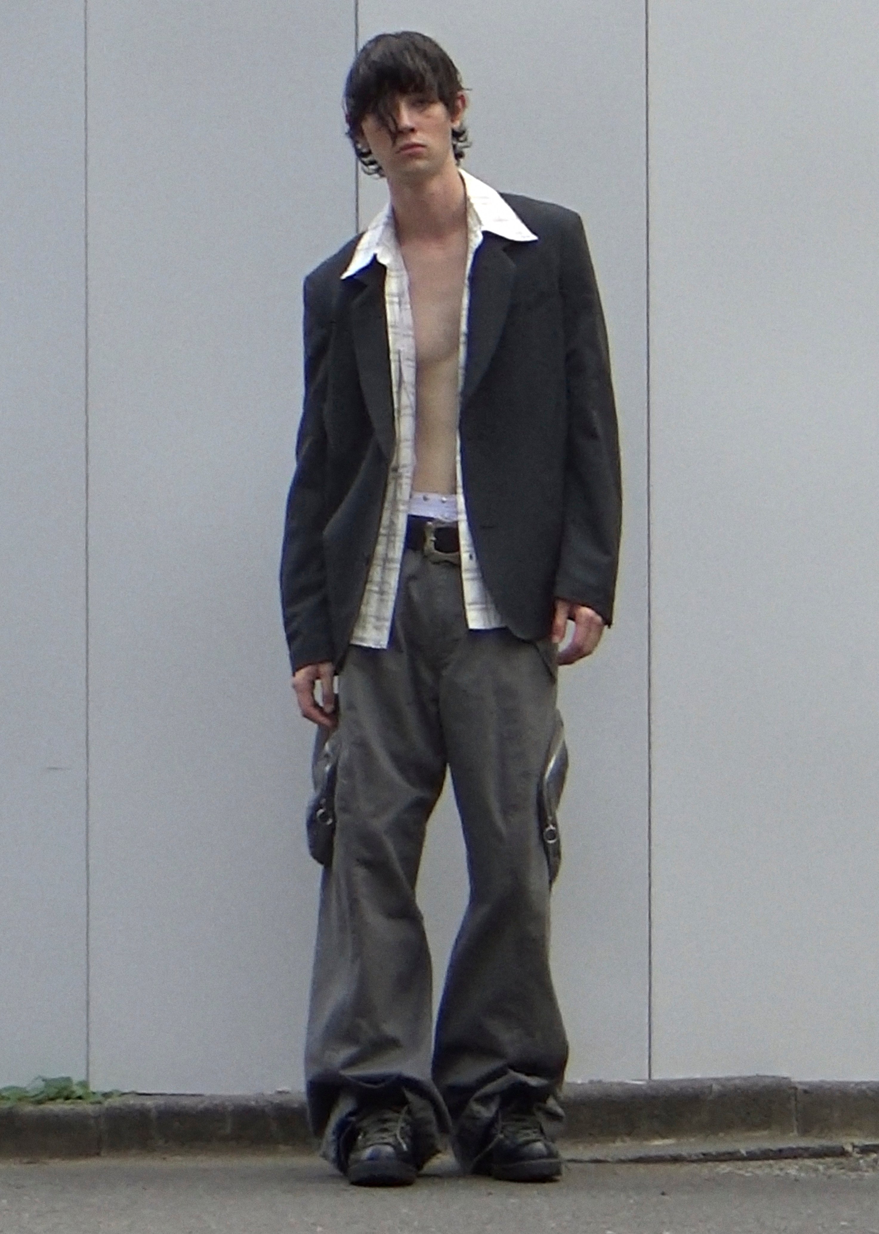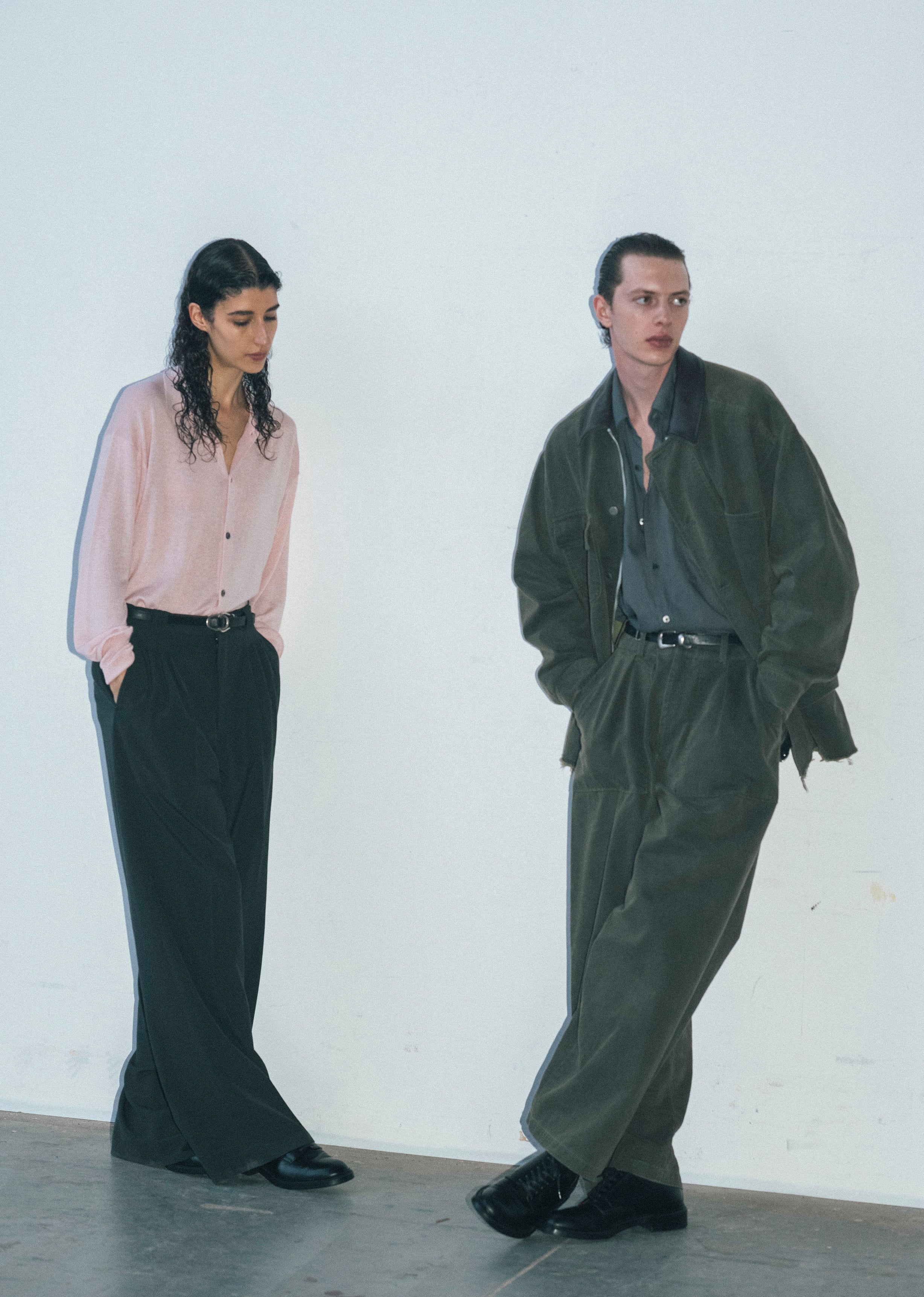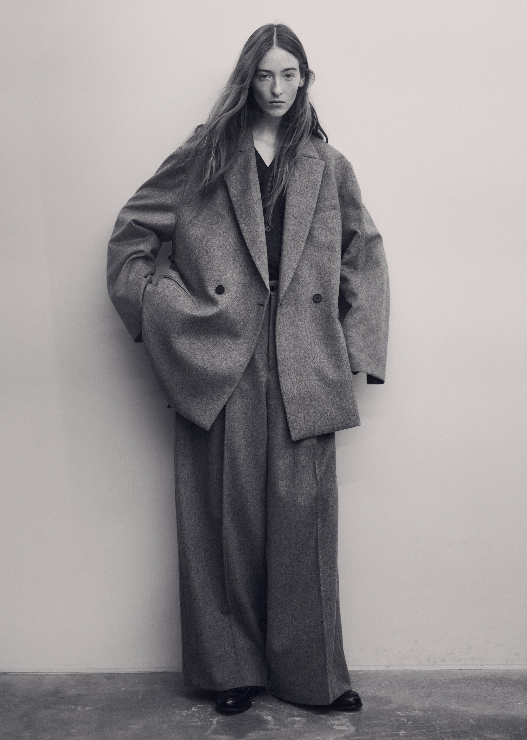 GREIGE 3PLEATED WIDE-LEG TROUSERS