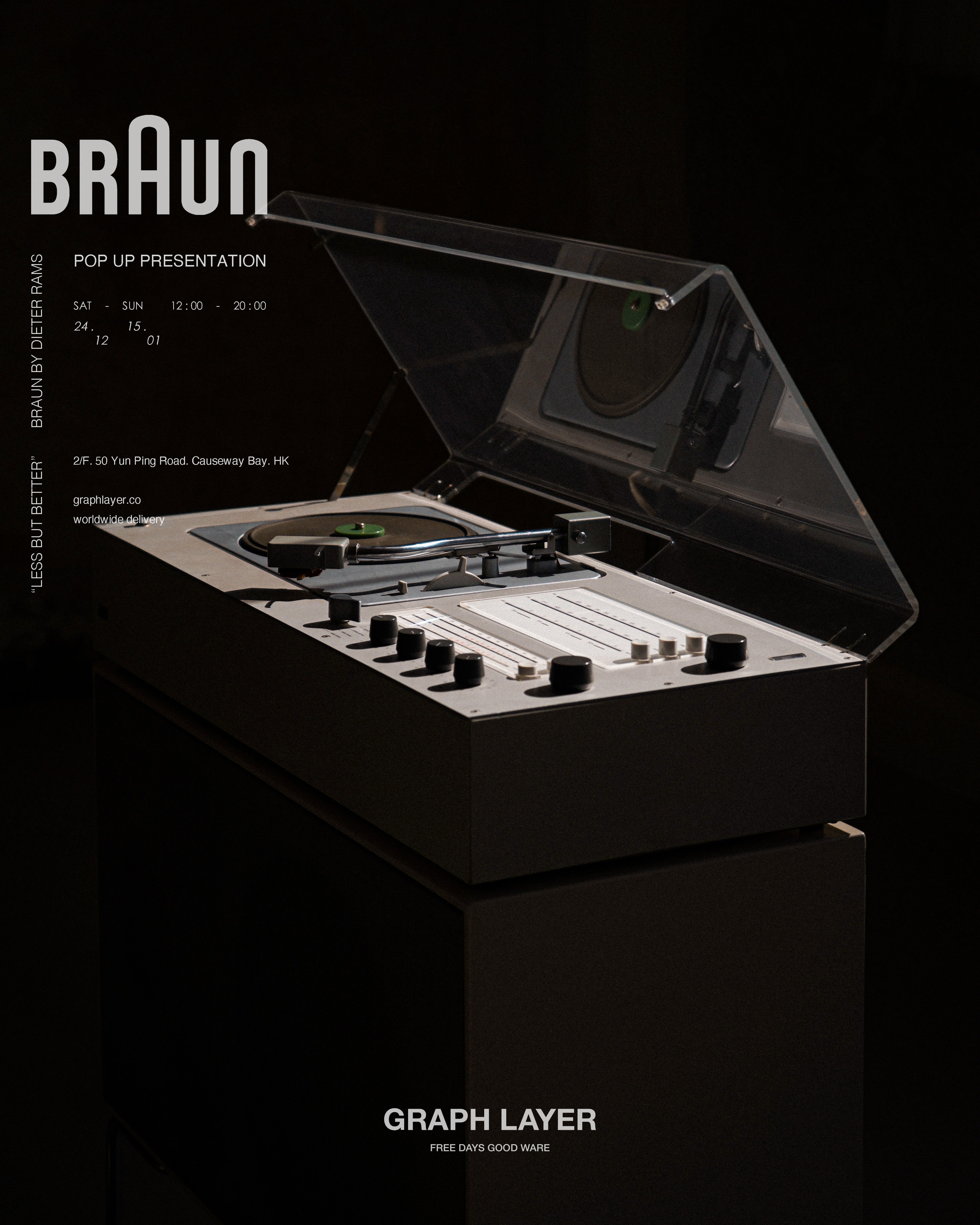 由德國工程師 Max Braun 於1921年創立的德國品牌 - 百靈 BRAUN, 以「進取的思想,創新的產品解決方案,最新技術的開發和使用」為企業核心。於1955年加入 BRAUN 的 Dieter Rams,在其後擔任了品牌的創意總監長達40年,成功奠定了 BRAUN 產品的簡約、實用、而富現代感的風格,更大大影響了近代產品設計的發展。