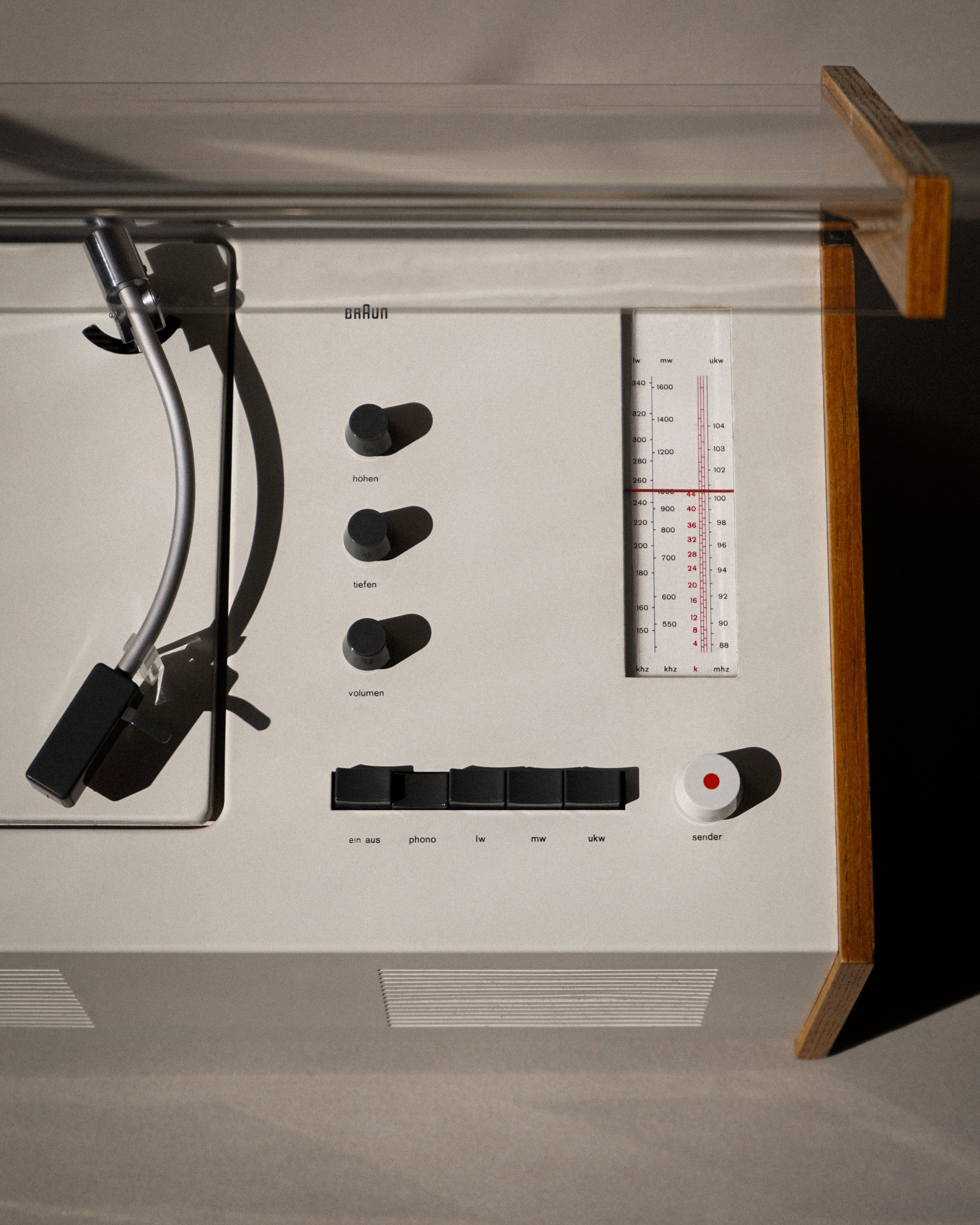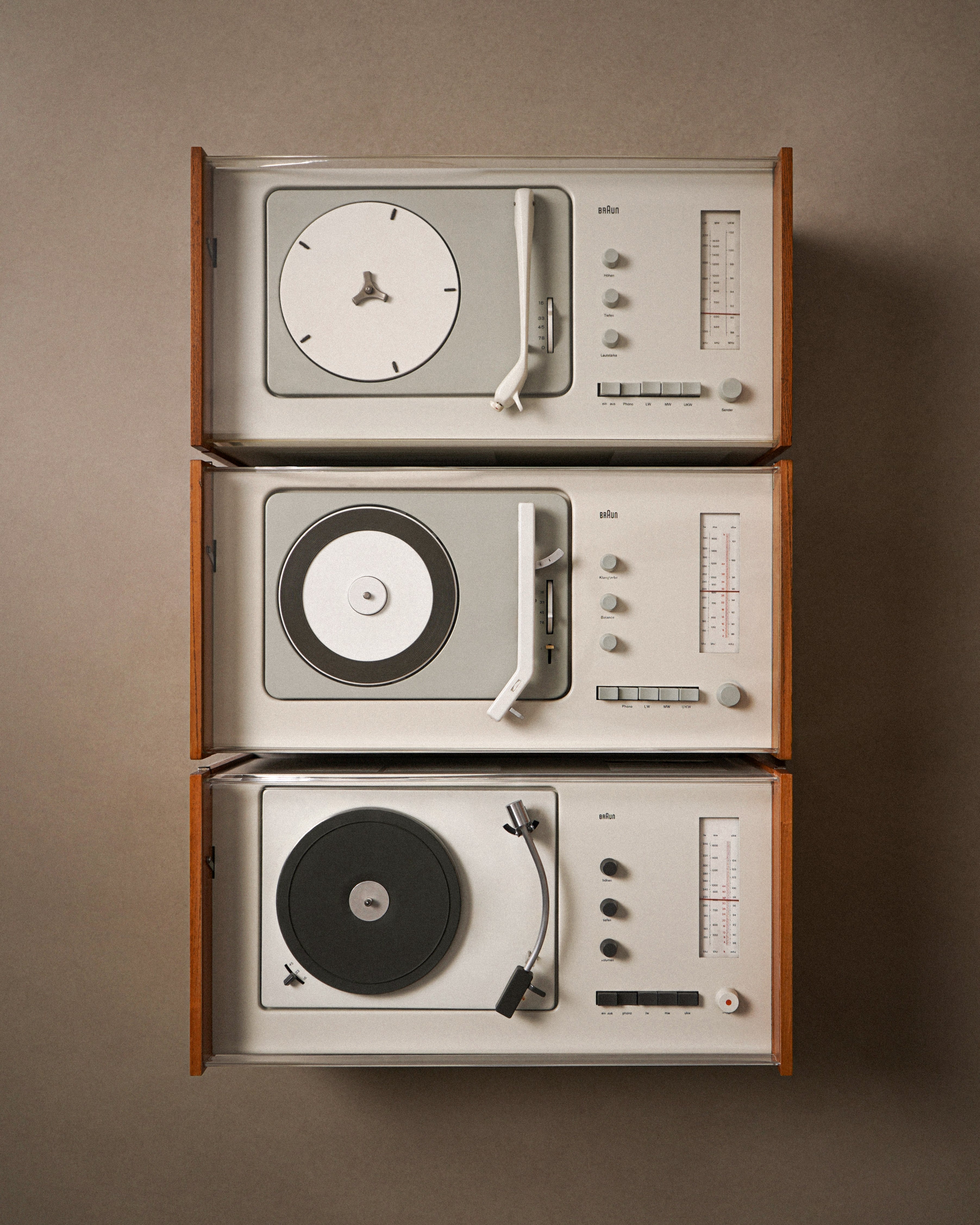 Dieter Rams' designs focus on returning objects to their simple essence, with the design principle of "Form follows function". He mostly uses clean and neutral colors such as black, white, and gray. He and his design team have created many classic products, such as BRAUN's SK-4 Record Player, TG60 Wandanlage Wall System and Vitsœ 606 Shelving System, which are permanently collected by famous museums around the world.